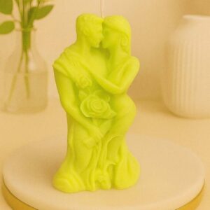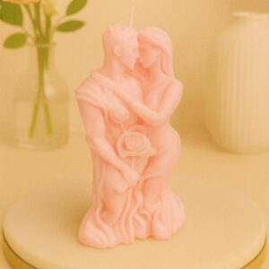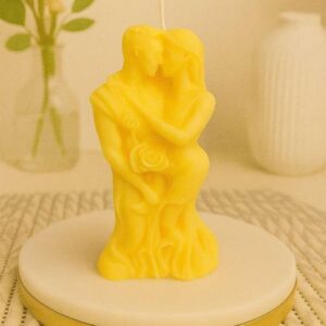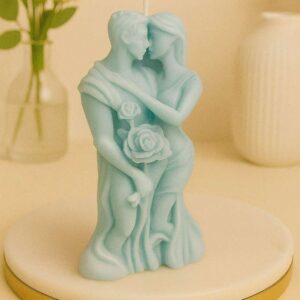 Crafted with intricate detailing, this candle beautifully illustrates the intimacy of a couple sharing a tender moment. Its soft pastel shades and delicate rose accents make it a stunning piece of décor that speaks to both the heart and the eye.