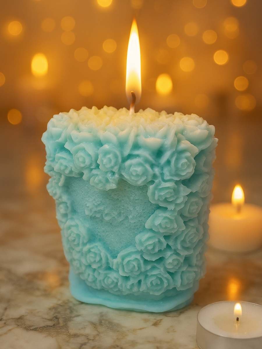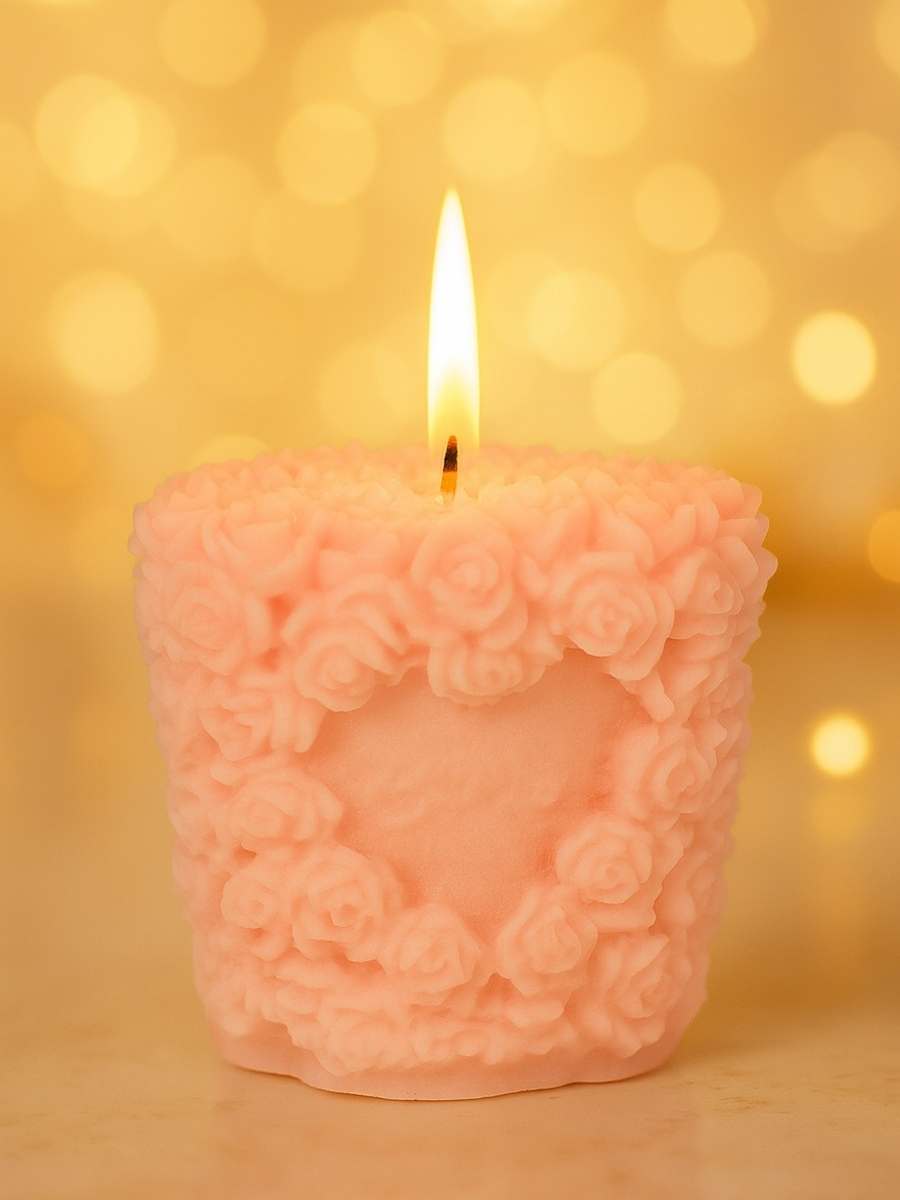 A celebration of timeless beauty, Rosette Glow is adorned with a sculpted bouquet of delicate roses wrapping gracefully around its surface. The intricate floral pattern gives the illusion of freshly bloomed petals, making this candle a work of art as much as a source of light.