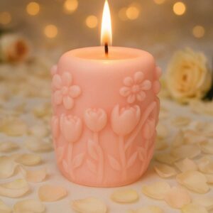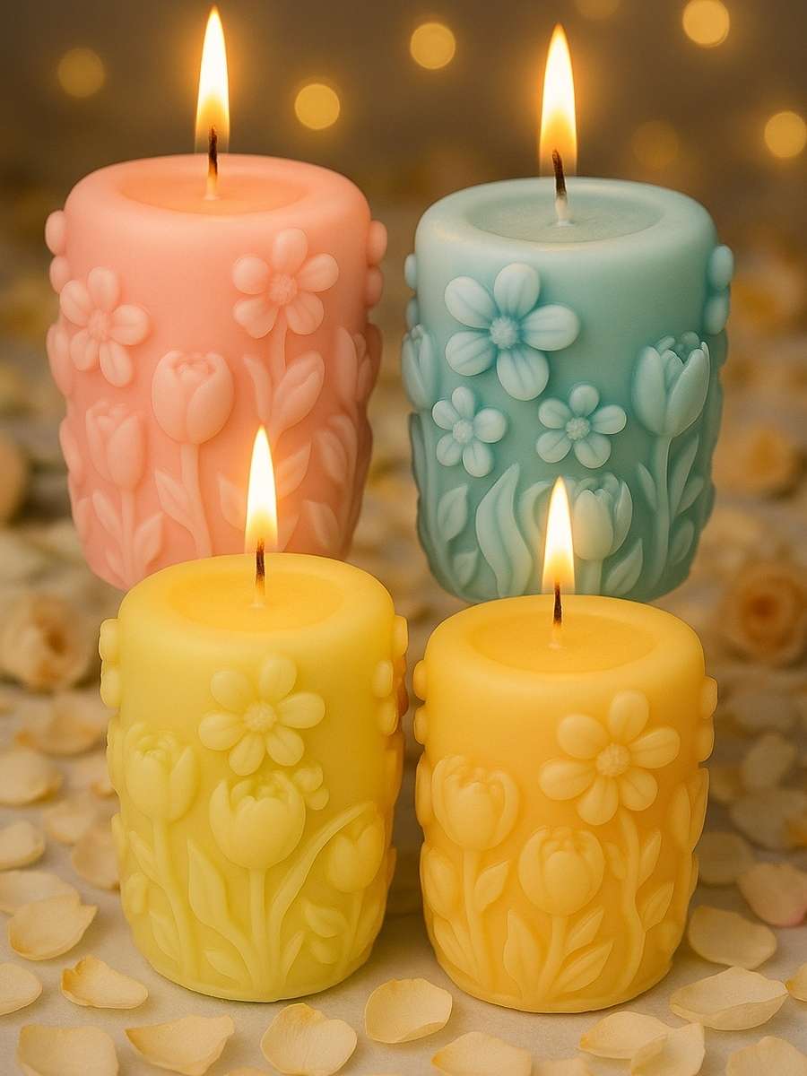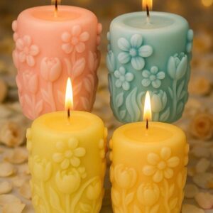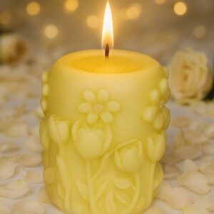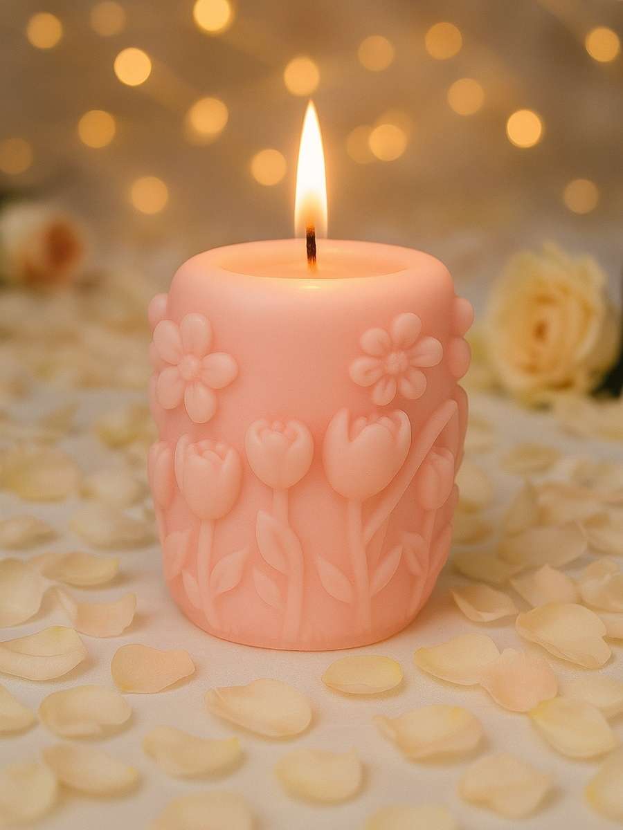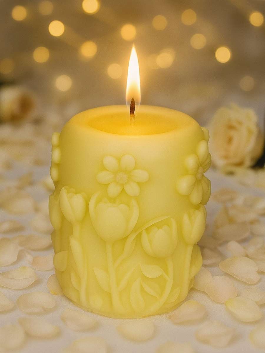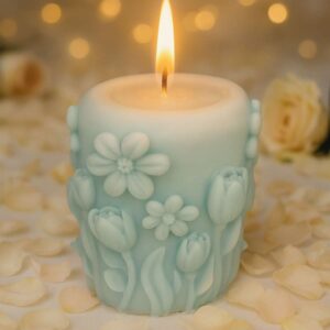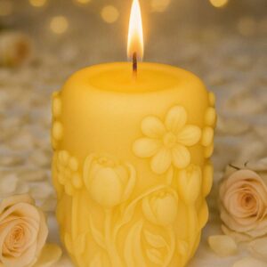 Capture the joy and freshness of spring with Springtime Radiance, a candle adorned with delicate floral patterns that seem to bloom straight from its surface. The intricate detailing evokes the gentle awakening of gardens in full blossom, bringing a touch of natural beauty and renewal to any space.